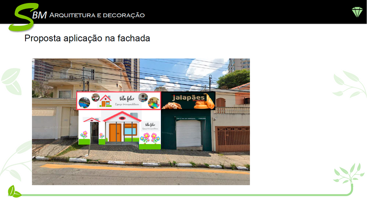 Aplicação de logo e estudo de fachada